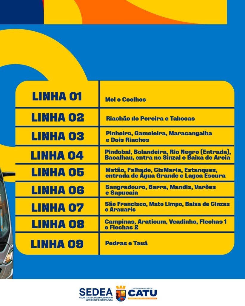 As novas rotas abrangem diversas localidades, incluindo Mel e Coelhos (Linha 01), Riachão do Pereira e Tabocas (Linha 02), Pinheiro, Gameleira, Maracangalha e Dois Riachos (Linha 03), além de Pindobal, Bolandeira, Rio Negro, Bacalhau, Sinzal e Baixa de Areia (Linha 04).