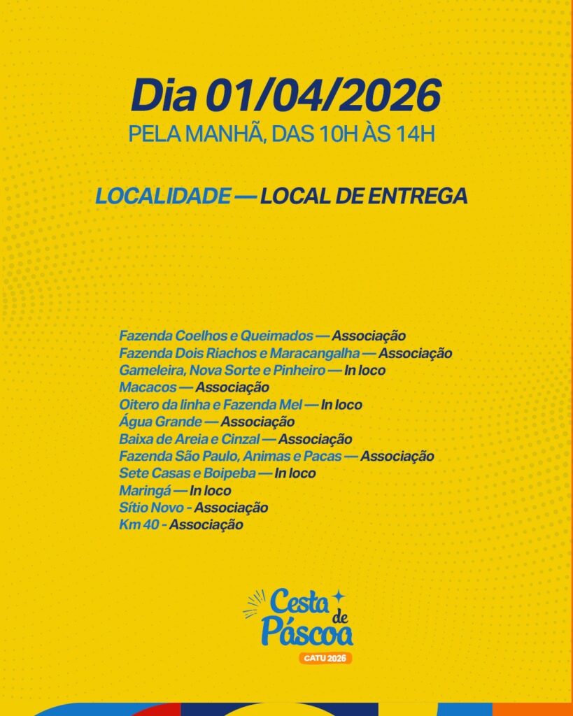 A iniciativa reforça o compromisso da gestão municipal com o cuidado com as famílias catuenses, especialmente em datas simbólicas como a Páscoa.